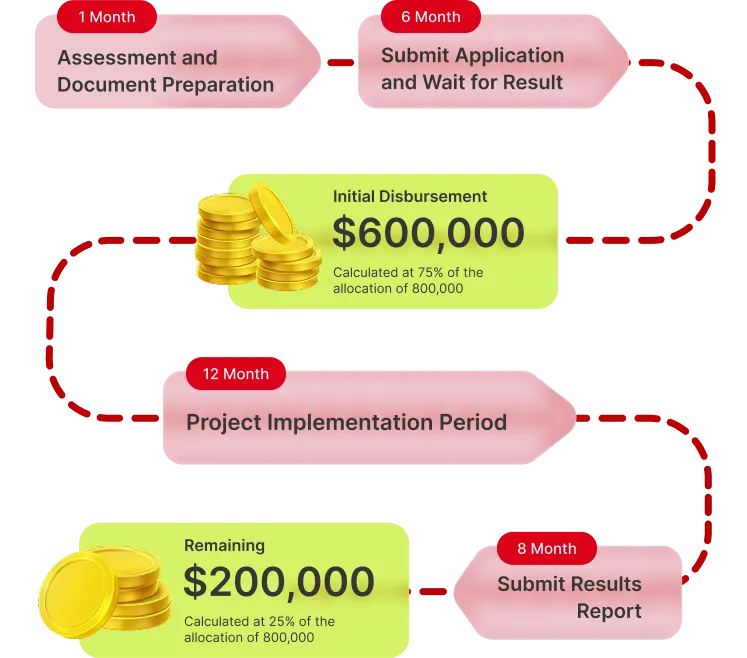 The Government will provide funding of up to 25% of the total approved project cost. The enterprise must contribute at least 75% of the total approved project cost in cash.